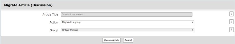 In the past, articles were frozen into their type. If, for example, you have a series of discussion that you would like to organize under a new group, there was no option to do so. You could copy & paste the article content, but the comments and other components would not follow. The new Migrate function addresses this limitation.